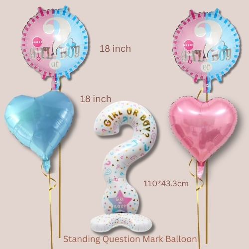 Gender Reveal Question Mark Design, Pink and Blue Foil Balloons